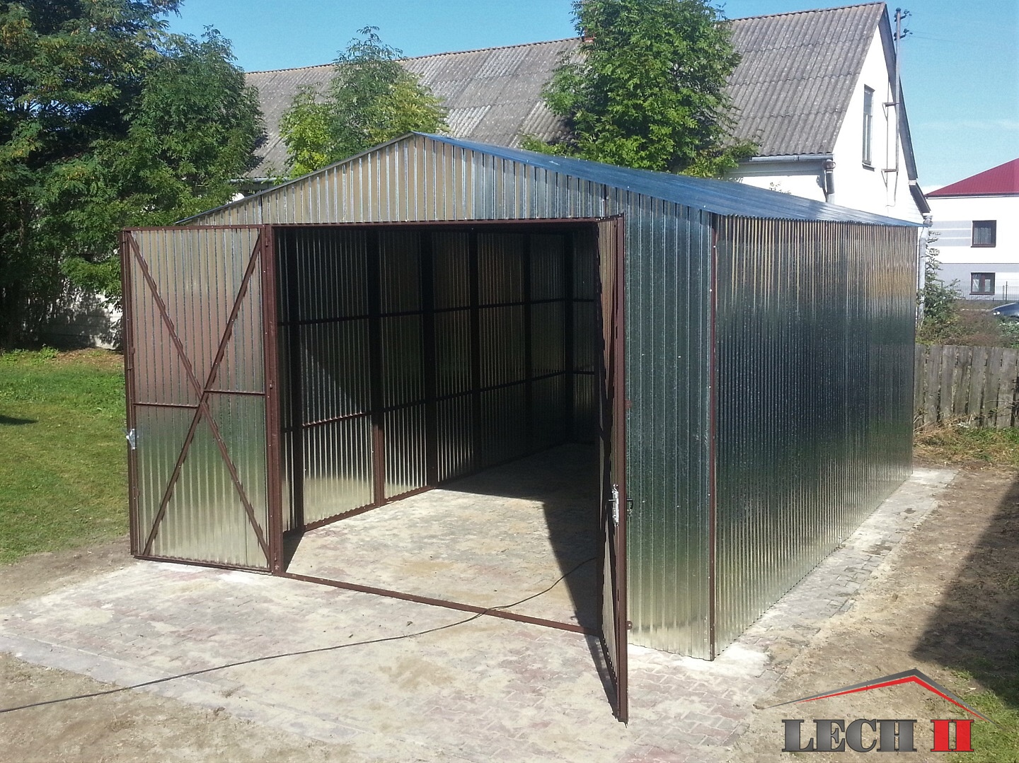 Konstrukcja garażu wykonana jest z kątowników oraz ceowników giętych na zimno. Konstrukcja pomalowana jest farbą podkładową. Całość obłożona jest blachą ocynkowaną ogniowo pierwszego gatunku i przymocowana do konstrukcji za pomocą nitów aluminiowych.